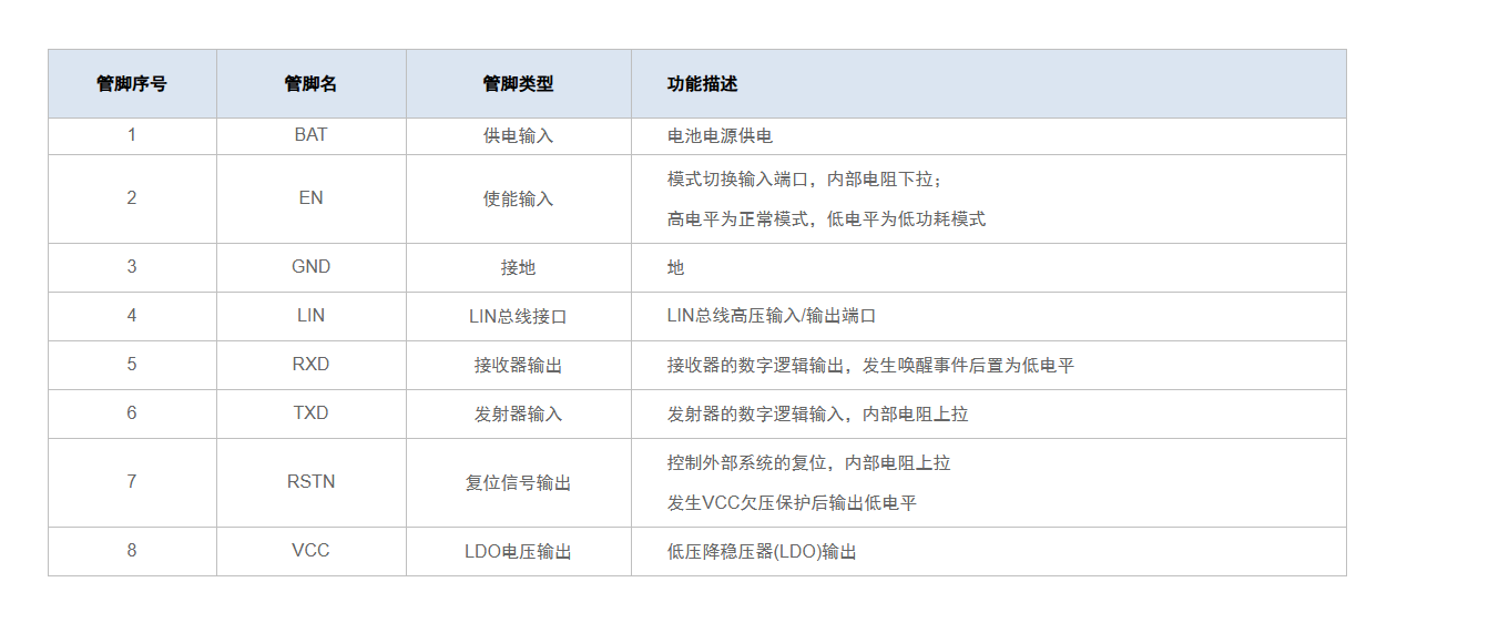• 支持 LIN/BAT 管脚±8KV ESD