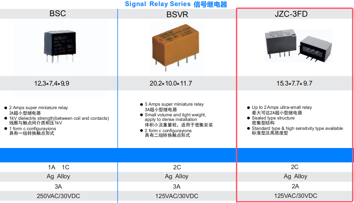 ●最大可达2A超小型继电器