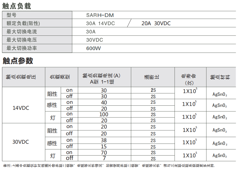 1. 30A触点切换能力。