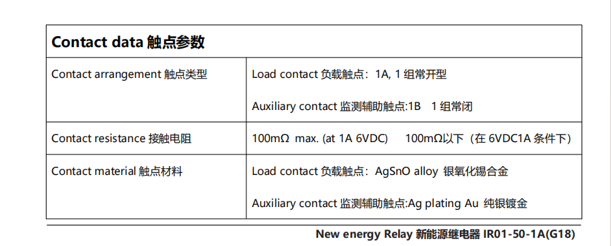 IR01-50-1A(G18) New energy Relay 新能源继电器