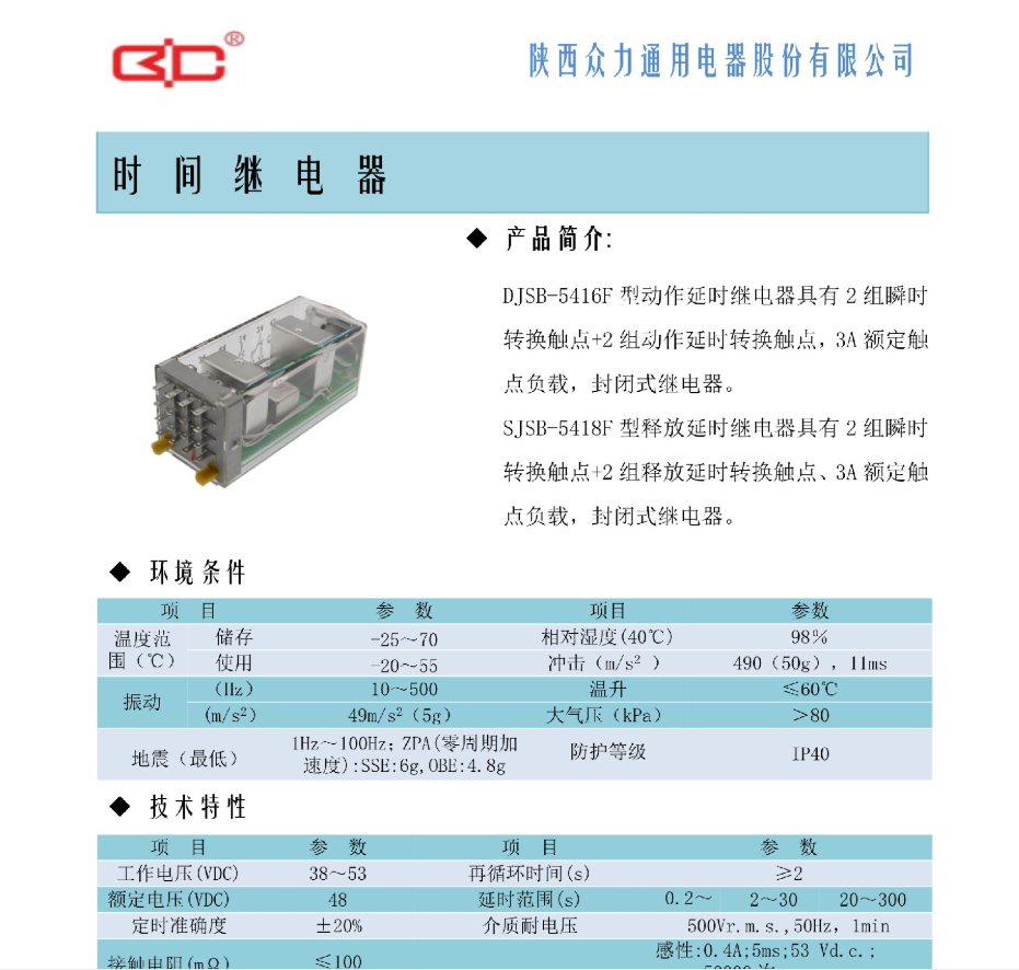 ● DJSB-5416F型动作延时继电器